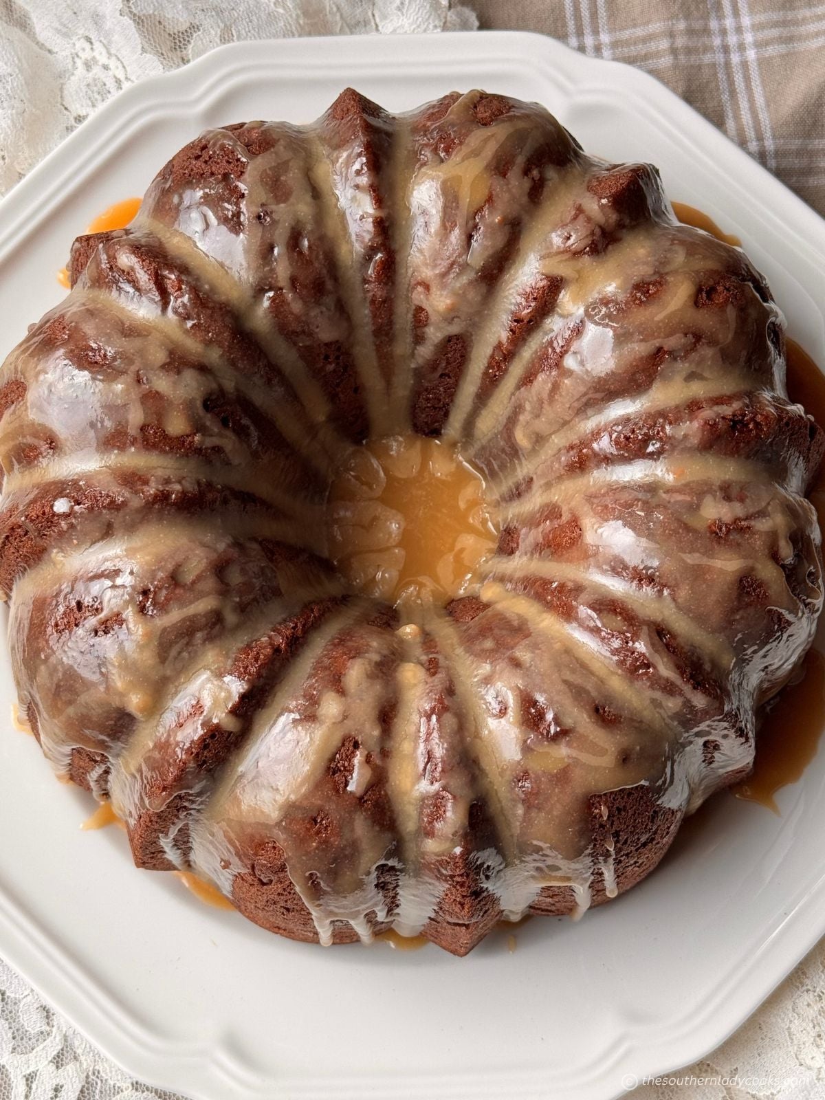 Cook dinner in preheated 350 diploma oven for 55 – 60 minutes. Take away from oven and let cool for 10 minutes earlier than eradicating from pan. Cool fully earlier than including caramel frosting.