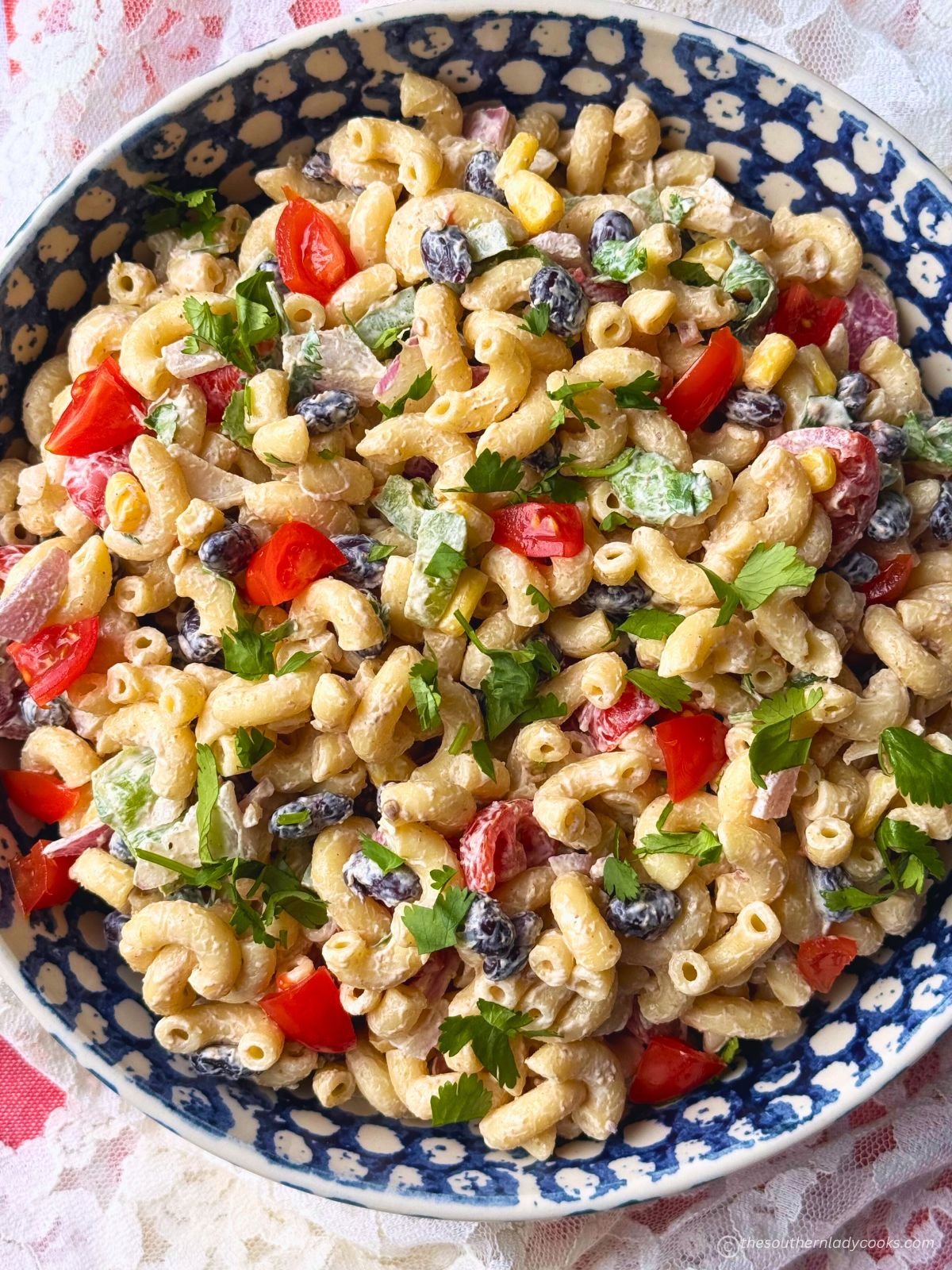 Like most salads, you may miss the greens you don’t like. Many individuals don’t like cilantro, so you may simply go away that off. You may also use Greek yogurt instead of the mayonnaise. We used macaroni, however you should use any pasta you could have available.